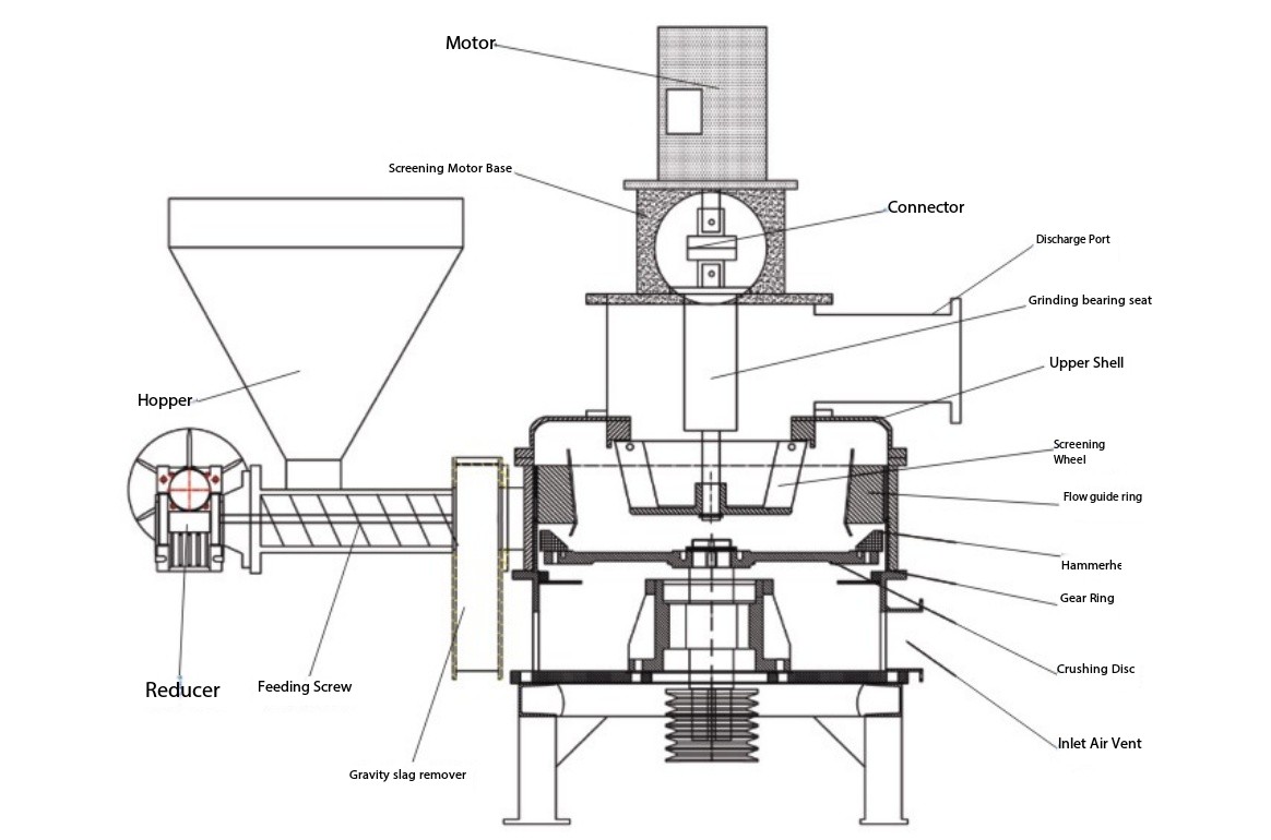 Piège à impuretés par gravité : le système d'alimentation comprend un séparateur par gravité intégré pour éliminer les débris lourds et les impuretés métalliques avant qu'ils n'entrent dans la chambre de broyage, protégeant ainsi le rotor et les revêtements des dommages.