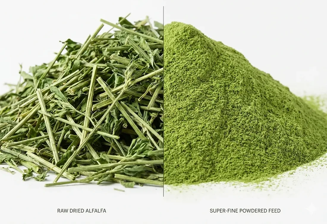 Intégrité nutritionnelle et contrôle de la température Le broyage à haute teneur en fibres peut générer de la chaleur, qui détruit les protéines et les vitamines. Notre système utilise une conception à flux d'air à grand volume qui agit comme un système de refroidissement naturel. Ce procédé « Cool Grinding » préserve la couleur verte naturelle et le profil nutritionnel du fourrage.