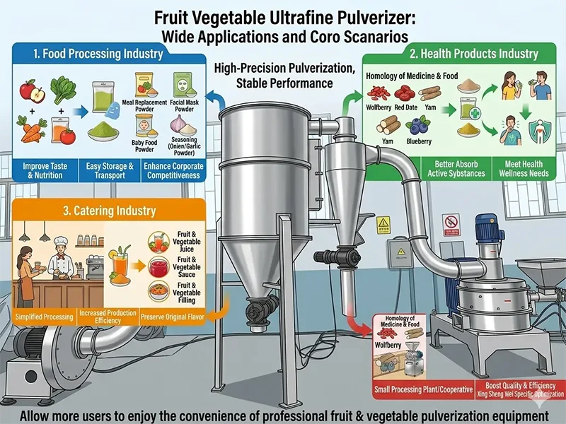 Le pulvérisateur ultrafin de fruits et légumes, avec son avantage de broyage de haute précision et ses performances stables, est largement utilisé dans plusieurs domaines. Les principaux scénarios d'application sont les suivants :