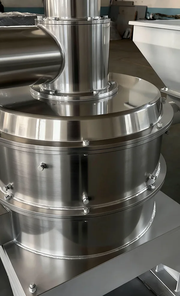 Matériau ultra-dur Le pulvérisateur ultrafin n'utilise pas de tamis ou de tamis car ils s'useraient ou se boucheraient immédiatement. Au lieu de cela, une roue de classification d’air interne sépare la poudre. Vous pouvez ajuster la taille des particules en modifiant la vitesse du moteur du classificateur via un variateur de fréquence. Cela garantit une répartition granulométrique étroite pour les matériaux de grande valeur.